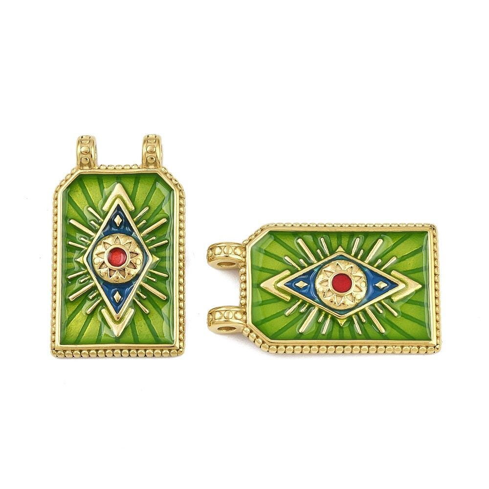 Pendentif médaille porte bonheur 30 mm en ACIER INOXYDABLE doré émaillé pendentif œil breloque porte bonheur