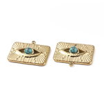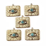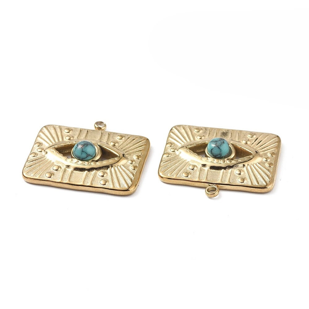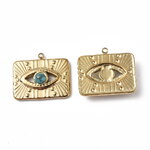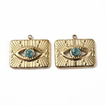 Pendentif médaille rectangle œil protecteur 17,5 mm en acier inoxydable doré avec une pierre turquoise