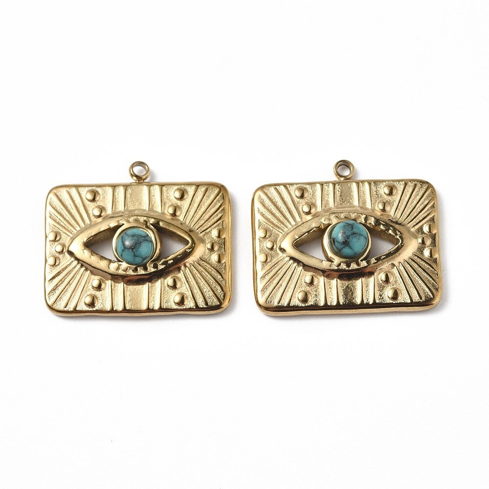 Pendentif médaille rectangle œil protecteur 17,5 mm en acier inoxydable doré pendentif porte bonheur breloque chance