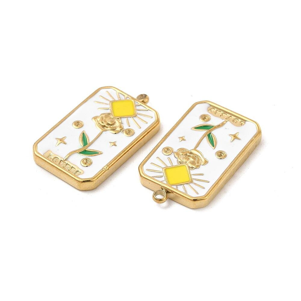 Pendentif médaille tarot 30 mm en acier inoxydable doré émaillé pendentif soleil breloque carte tarot Ajout au panier