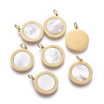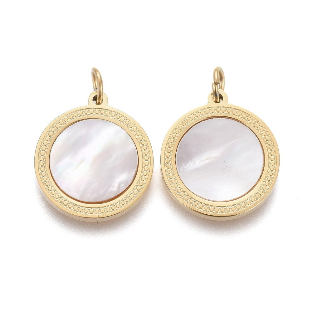 Pendentif coquille ronde en acier inoxydable doré 13,5 mm