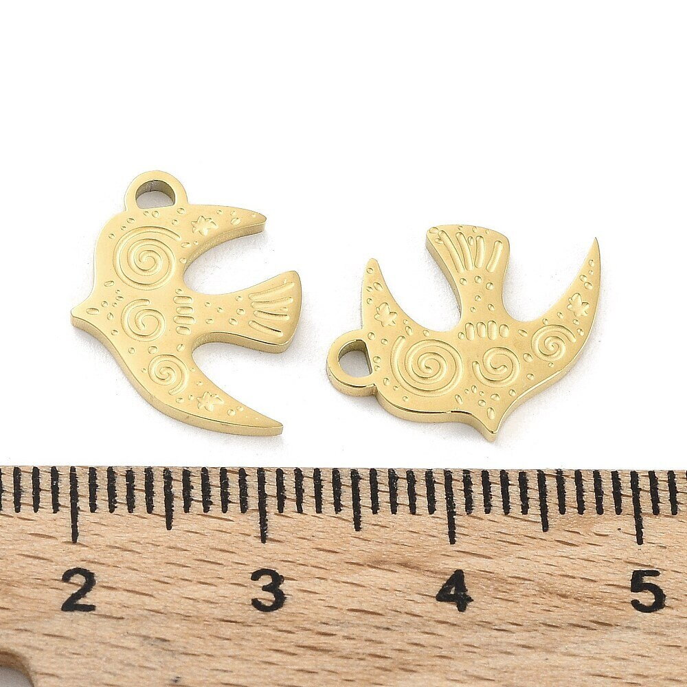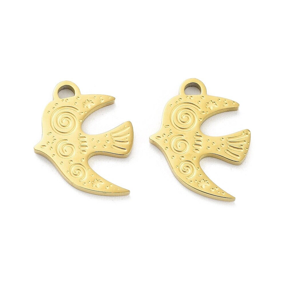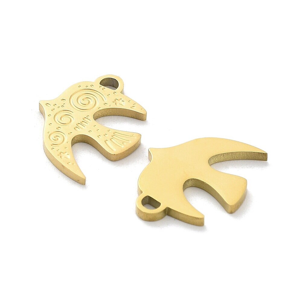 Pendentif oiseau doré en Acier Inoxydable Chirurgical 15 mm Breloque colombe doré