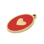 Pendentif ovale rouge cœur doré en acier inoxydable 304