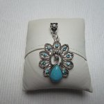 ARTICLE: 1 Pendentif "Paon/Turquoise " 5.4x3.15cm Sur Bélière Trou de 7.7x5.8mm Argent Tibétain