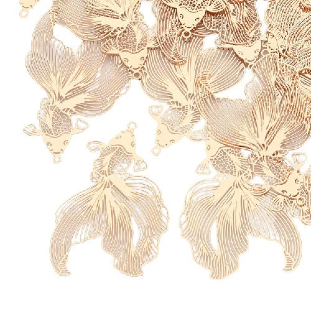 Pendentif poisson doré poisson japonais estampe filigrane carpe Koi 49 mm pendentif très fin et léger
