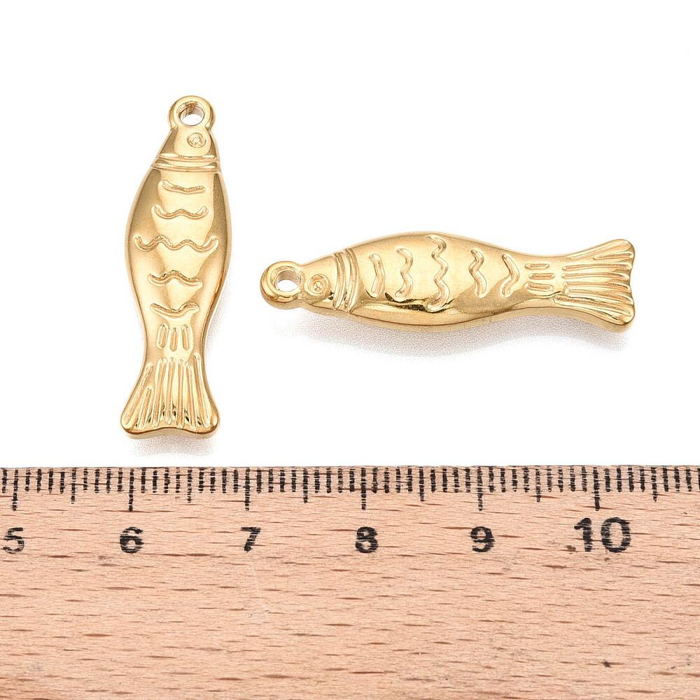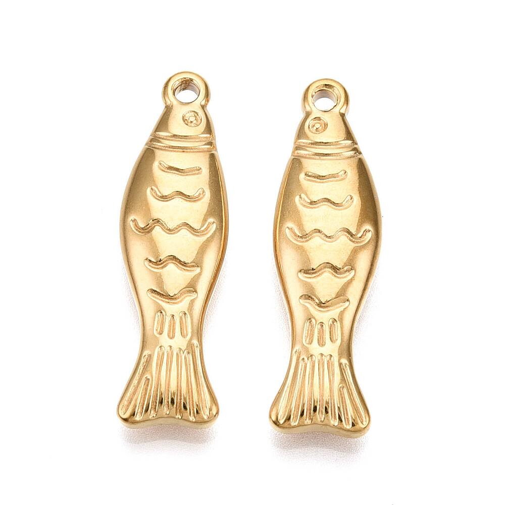 Pendentif poisson en acier inoxydable 304 doré 33 mm breloque poisson doré