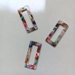 Pendentif rectangle, multicolore en acétate. Dimensions : 37x17mm