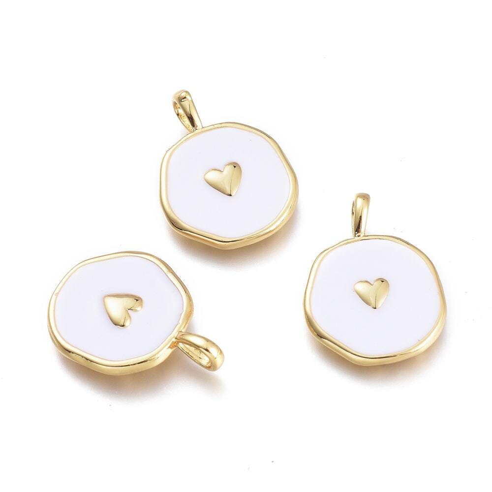 Pendentif rond motif cœur plaqué ou pendentif émaillé blanc 20 mm