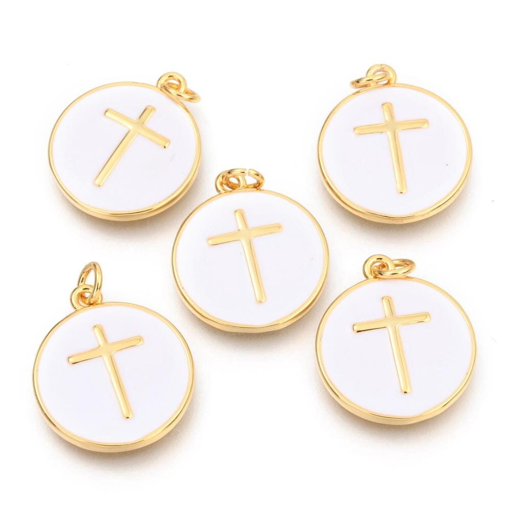 Pendentif rond motif croix plaqué ou pendentif émaillé blanc 17 mm