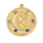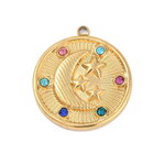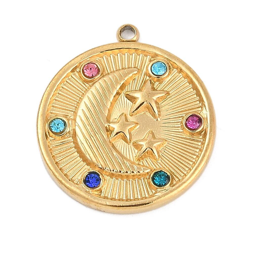 Pendentif rond motif lune et étoiles en acier inoxydable 304