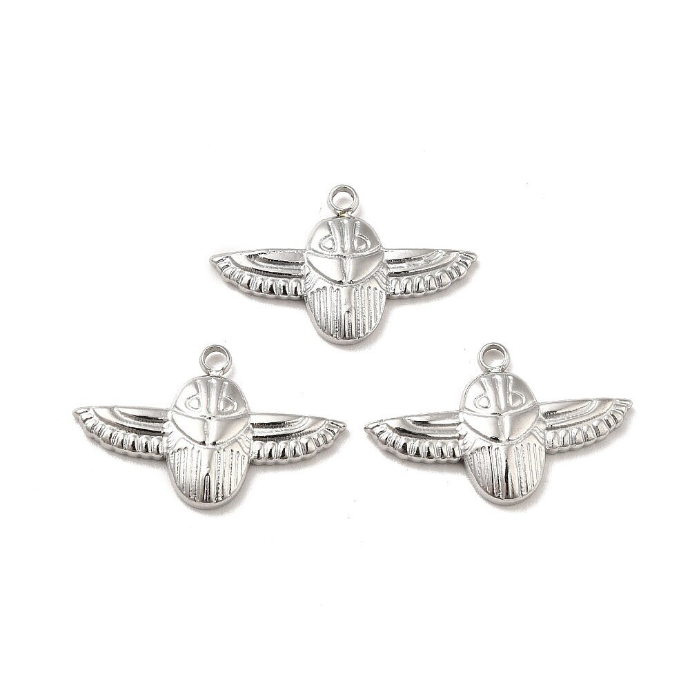 Pendentif scarabée argenté en acier inoxydable 304 breloque scarabée 12 mm