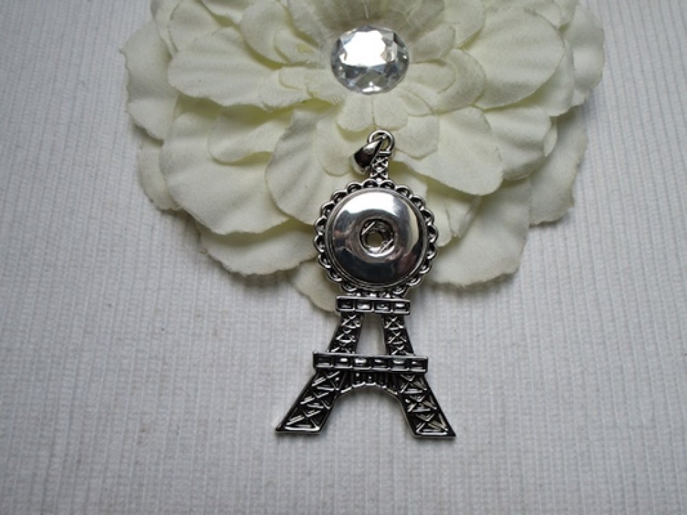 1 Pendentif Tour Eiffel 6.3x3.6cm argent tibétain métal pour bouton pression de 5.3mm standard (P45) vendu sans bouton