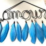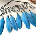 Cette plume mesure 7cm de long, en bleu avec accroche et piquot en bronze, chaque plume est différente mais je peux essayer de vous en trouver des similaires pour des Boucles d'oreilles harmonieuses, n'hésitez pas à me contacter !