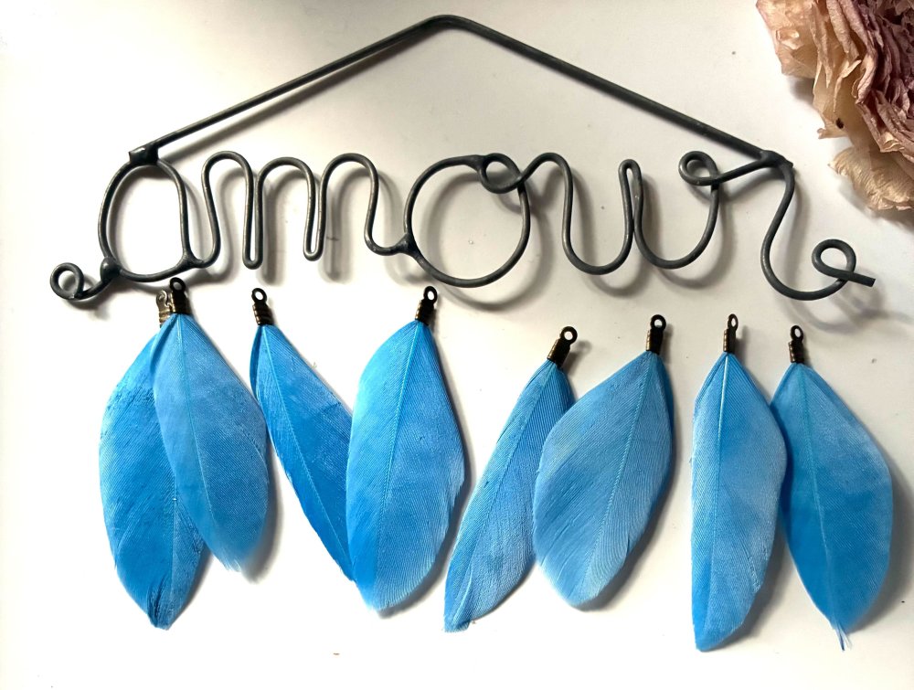 Plume en bleu lavande avec accroche bronze x1 4-5cm