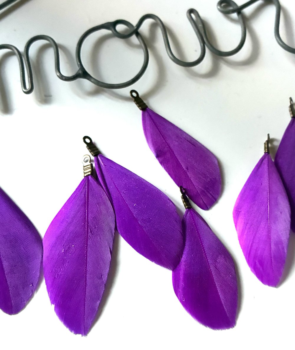 Plume en violet avec accroche bronze petit modèle 3,5cm
