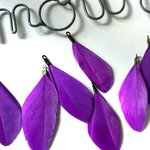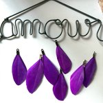 Cette plume mesure environ 3,5cm, en violet avec accroche et piquot en bronze, chaque plume est différente mais je peux essayer de vous en trouver des similaires pour des Boucles d'oreilles harmonieuses, n'hésitez pas à me contacter !