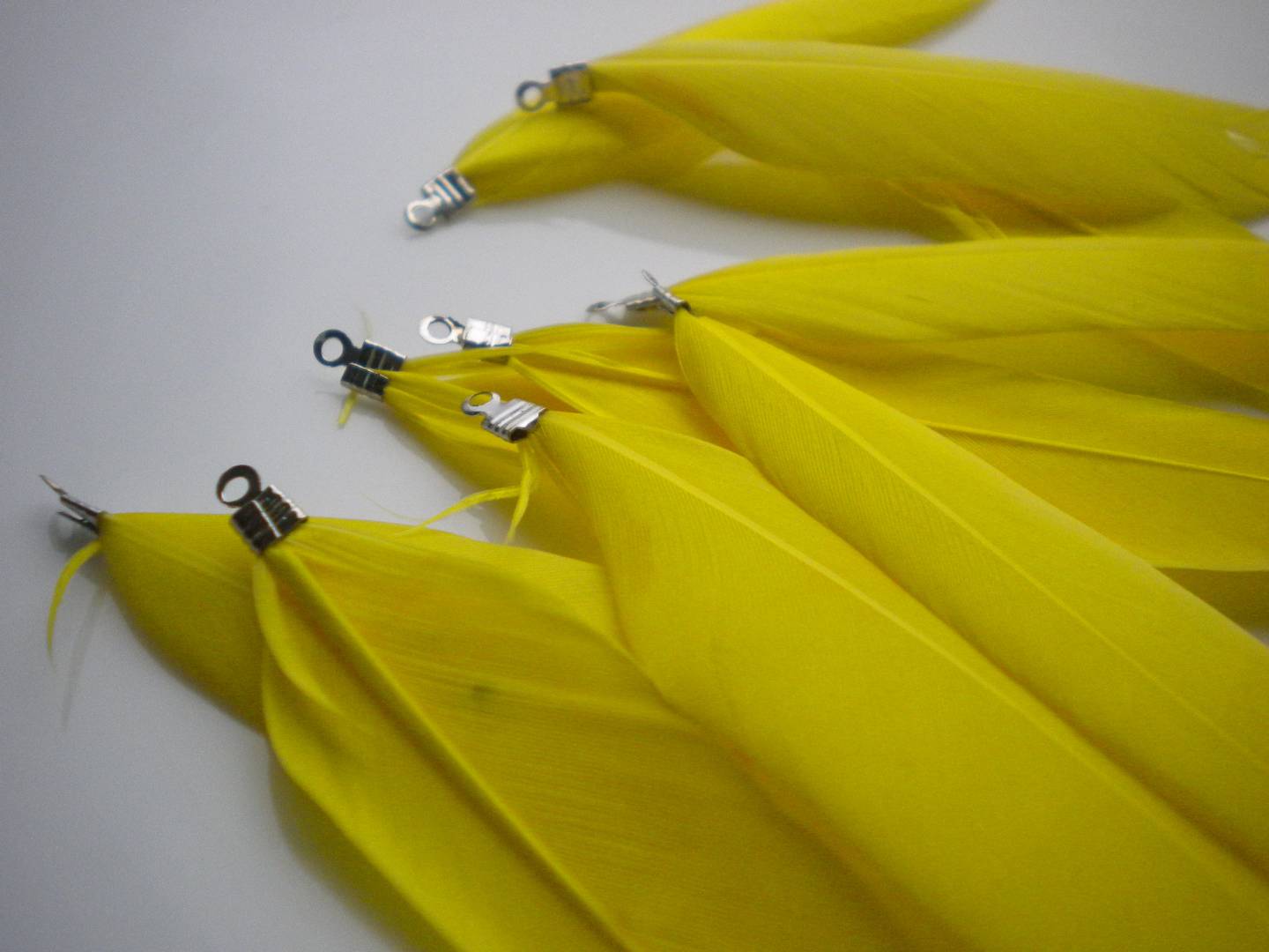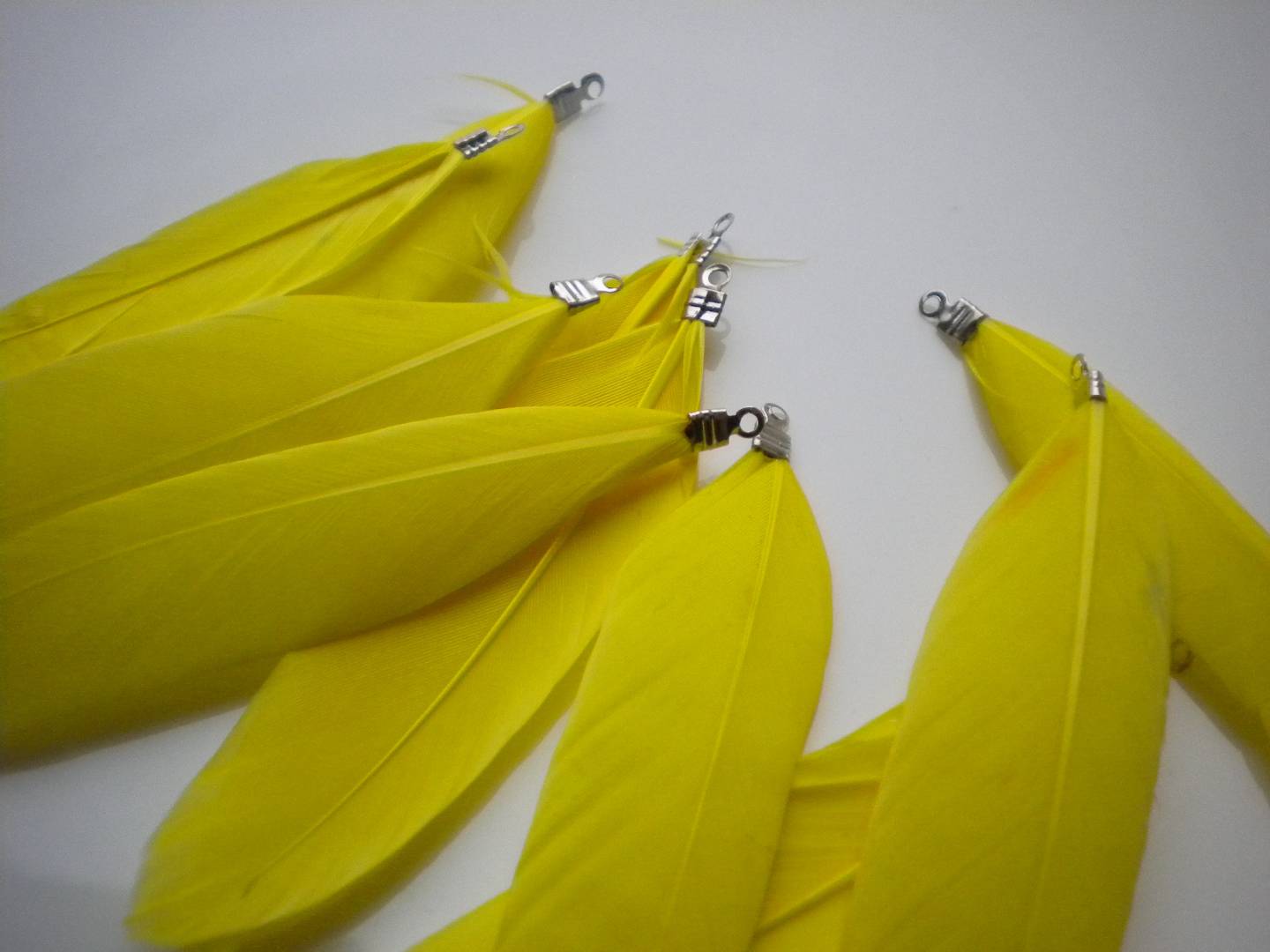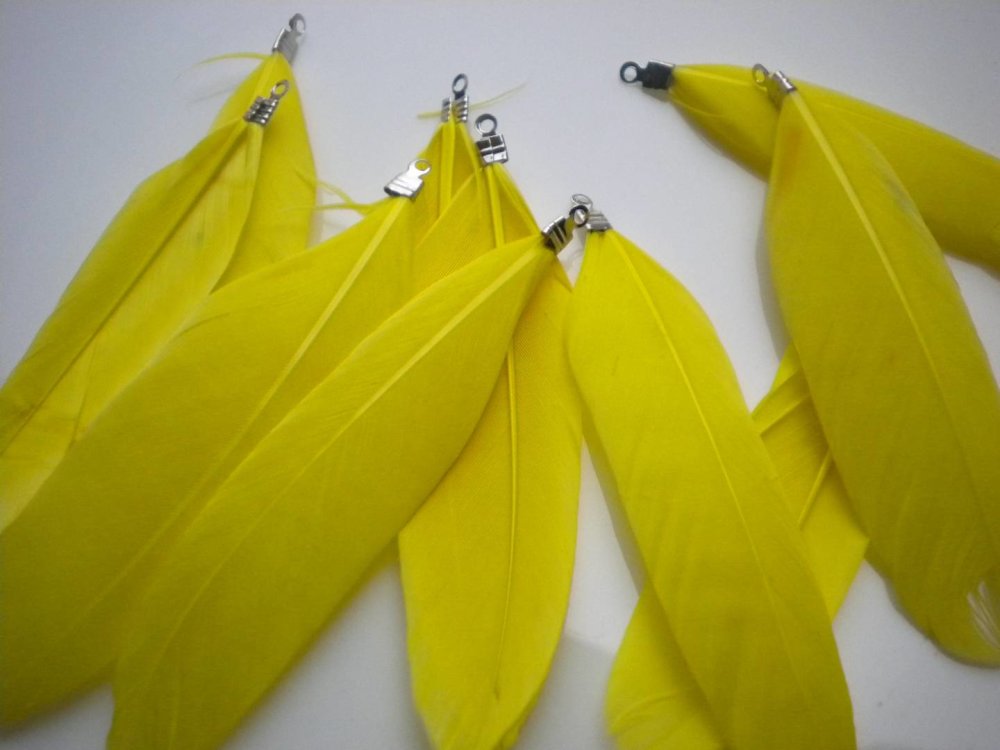 Plume jaune avec accroche métal argenté x1