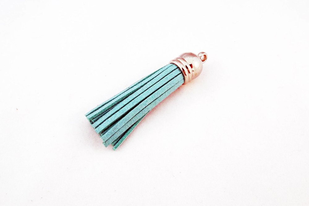 Pompon 55mm en Suédine Turquoise et Embout Métal Argenté
