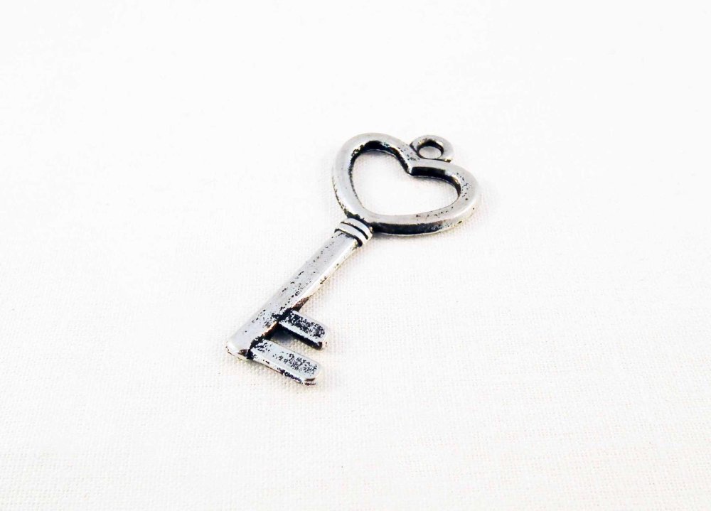 Breloque Pendentif en Argent Tibétain en forme de clé et Coeur, 38mm X 18mm.