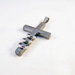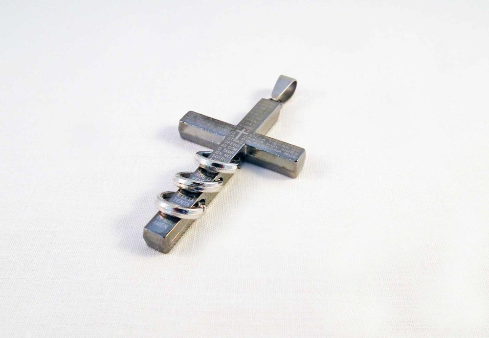 Pendentif Breloque Croix Hématite Trois Anneaux Écriture Religieux Noir Gris Ailes avec Bélière Argenté, 6cm X 3cm.