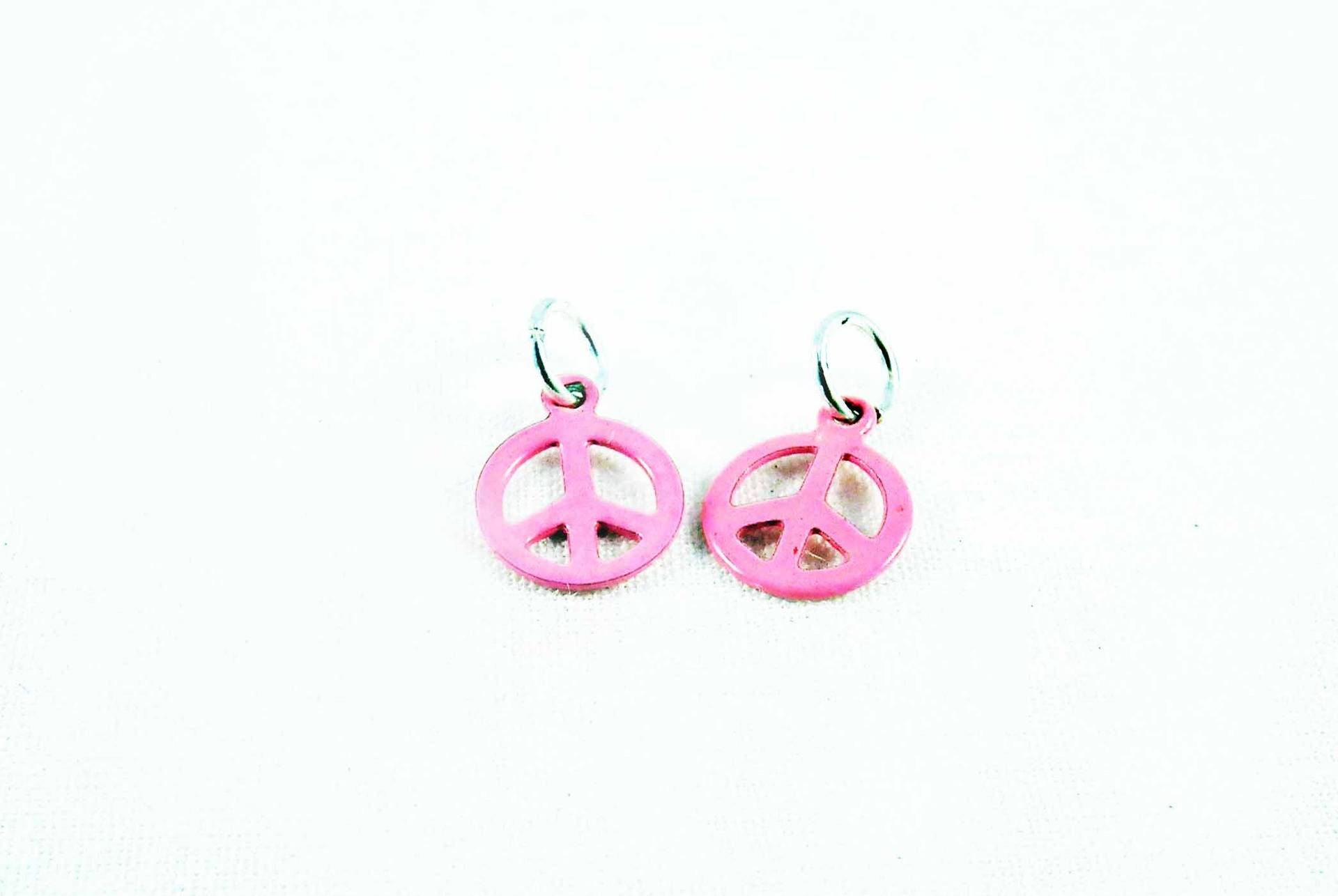 Une paire de 2 Breloques ROSE-PÊCHE "Peace and Love" Signe de Paix Métal Couleur Pop Flashy ou Fluo, 8mm de diamètre.