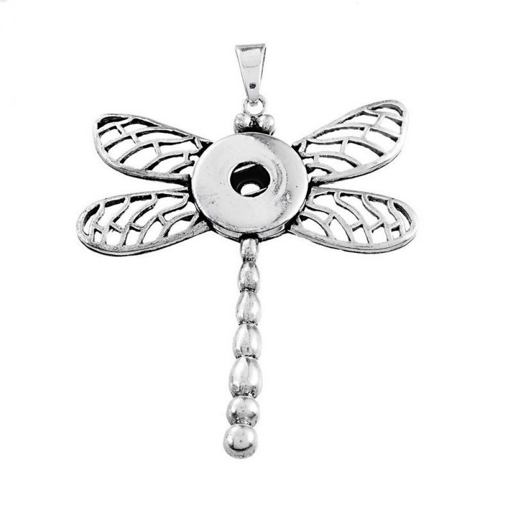 ce magnifique pendentif en forme de libellule pour bouton pression click en métal argent vieilli