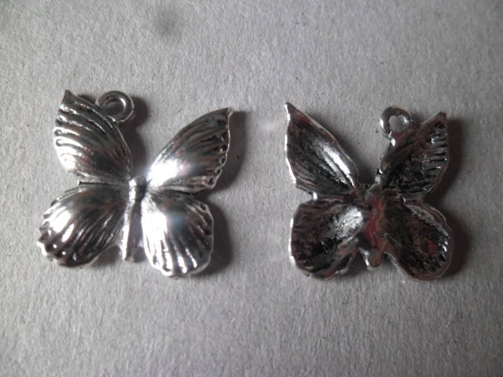 ce très beau lot de 2 pendentifs breloque charm en forme de papillon en métal argenté.