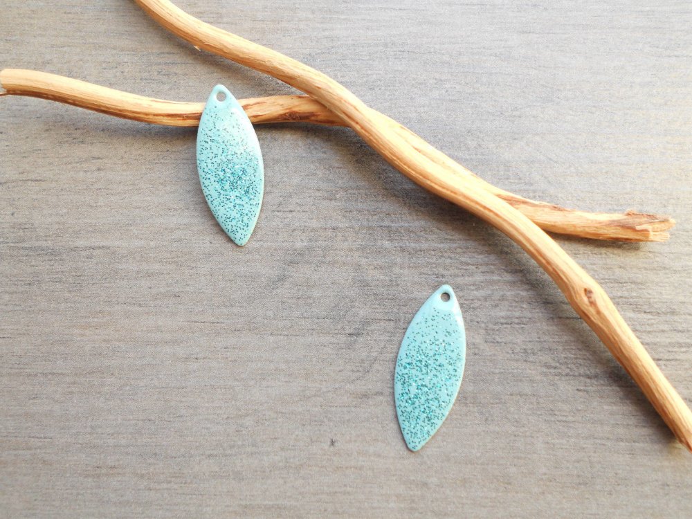 X 2 sequins navettes turquoise clair et pailleté bleu 25x10 mm