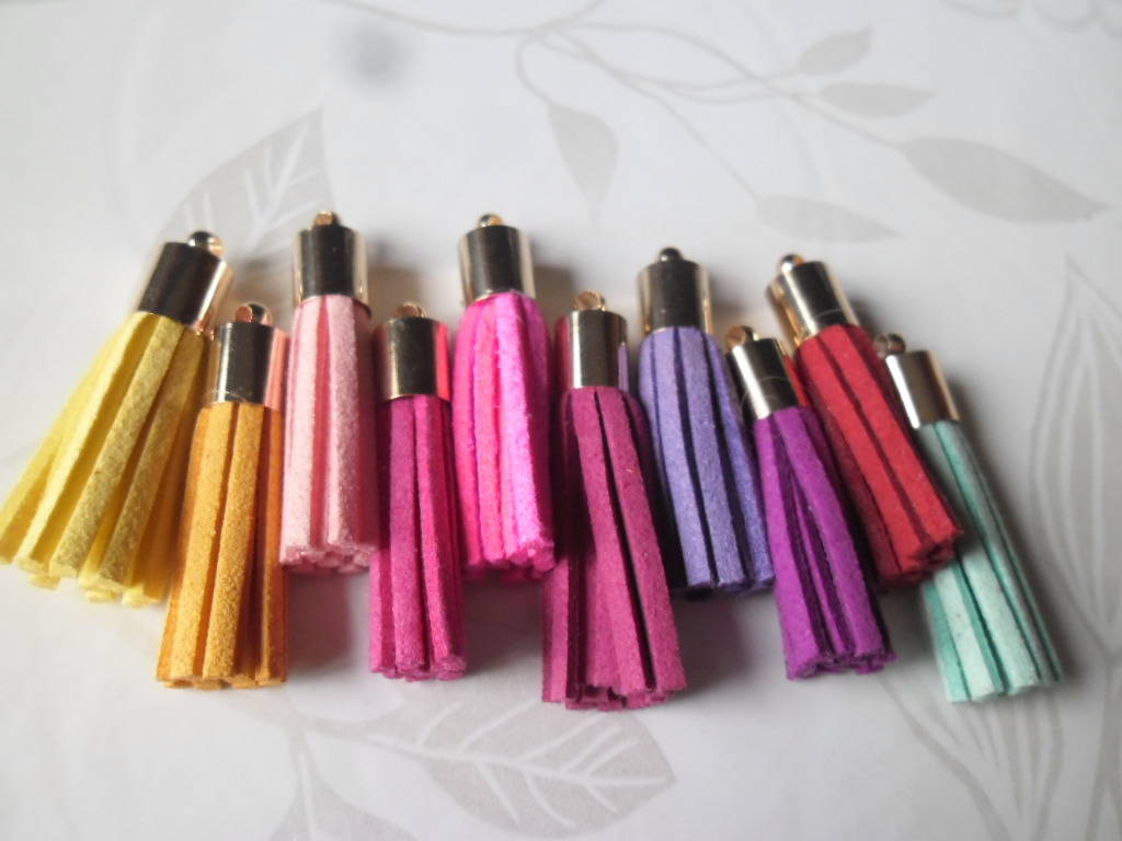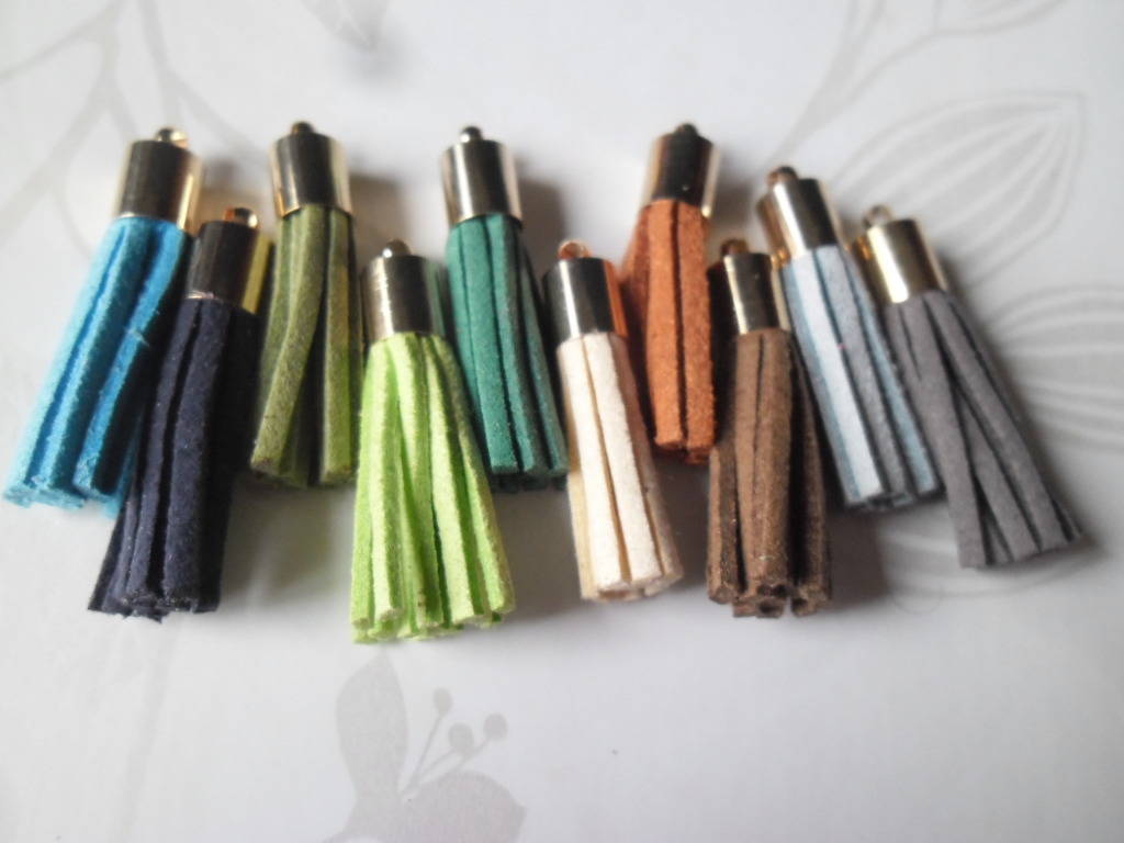 x 20+2 offerts mixte pendentifs pompon suédine multicolore gland plastique doré