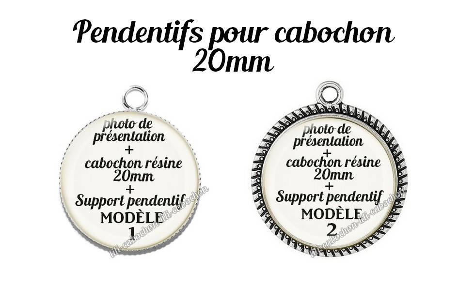 cabochon 25mm ou 20mm ou 18mm en résine ou verre avec ou sans support pendentif / connecteur
