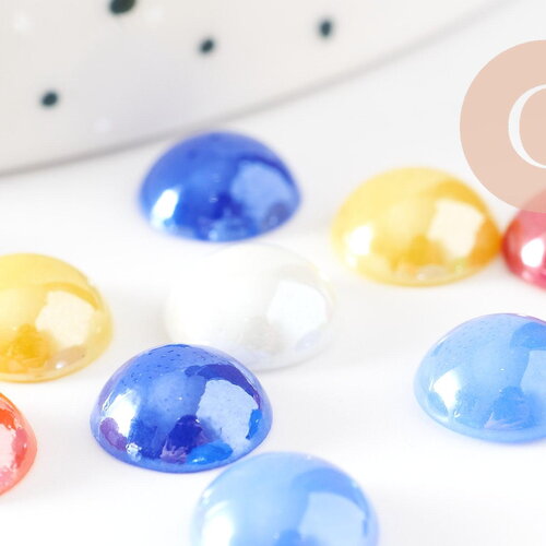 Ces cabochons rond irisé, dans des couleurs variées, sont idéals pour confectionner de multiples bijoux fantaisies. Vous pourrez rendre vos bijoux plus originaux en les plaçant sur une bague, les ajouter à un bracelet ou bien sur des manchettes. En lot de 20 pièces.