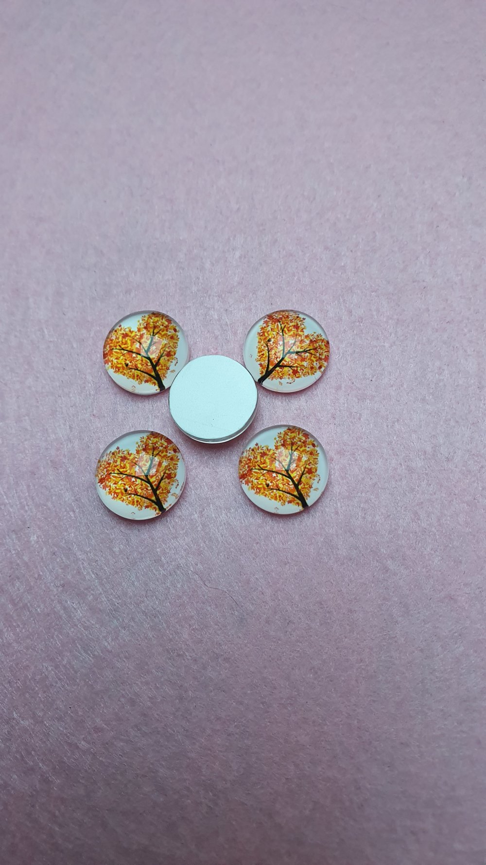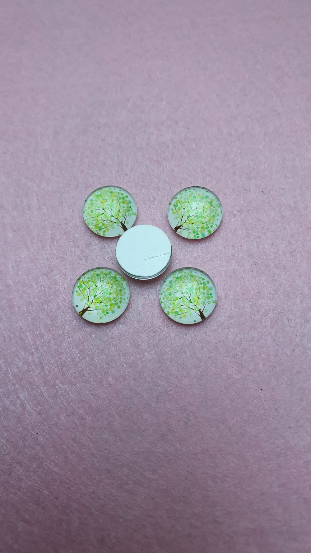 1 cabochon arbre rond 14mm multicolore épaisseur 4.7mm