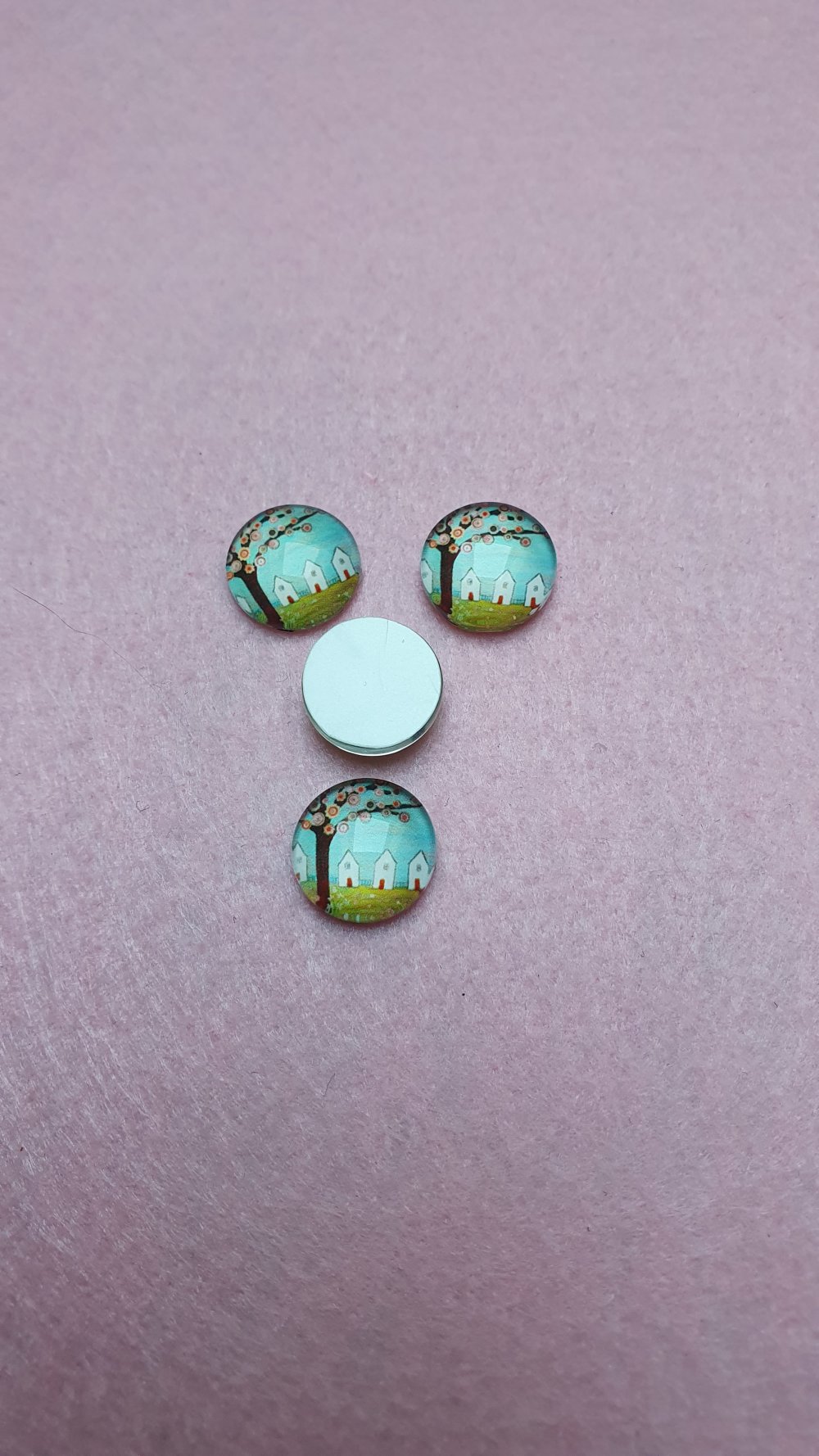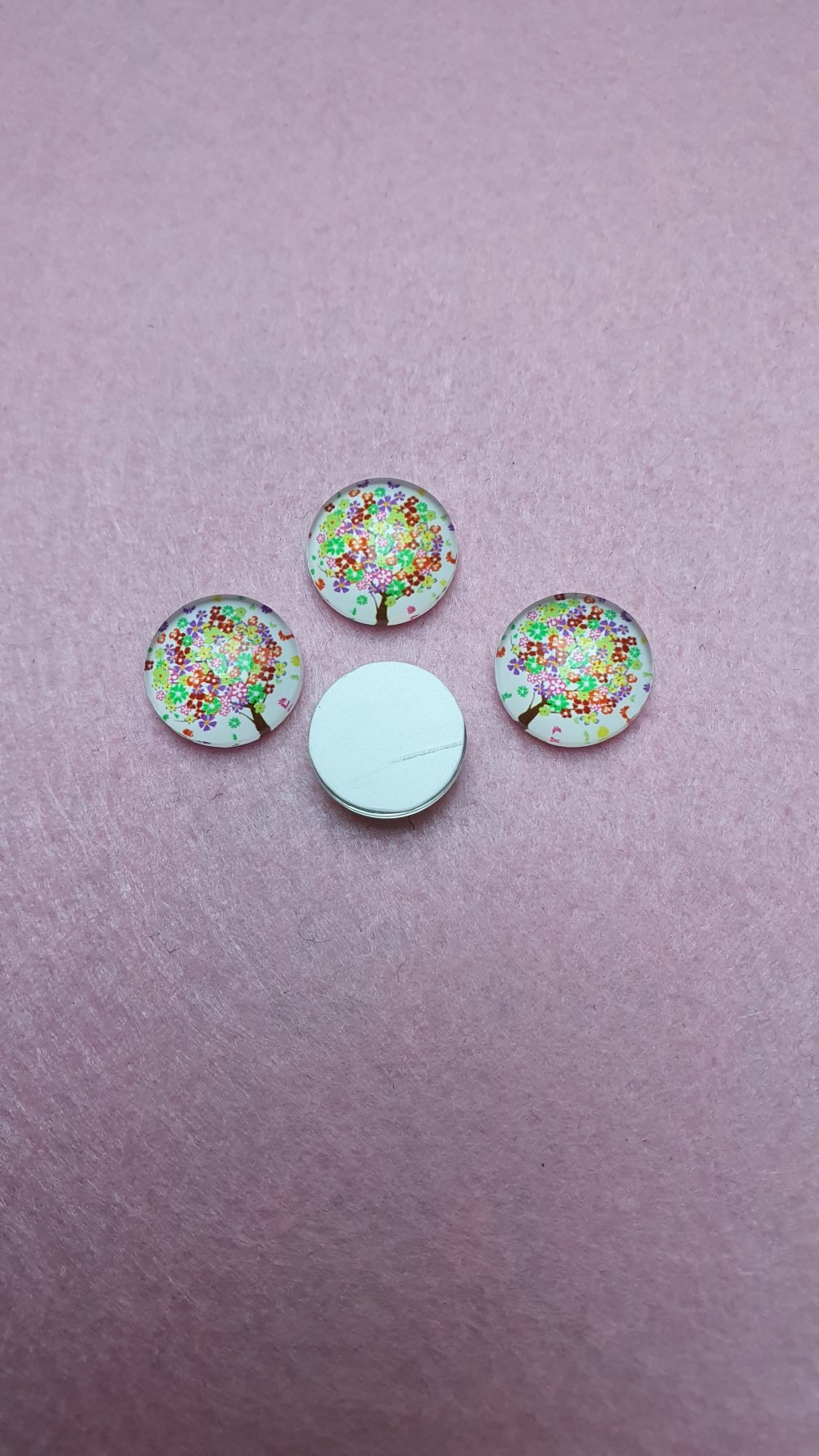 1 cabochon arbre rond 14mm multicolore épaisseur 4.7mm