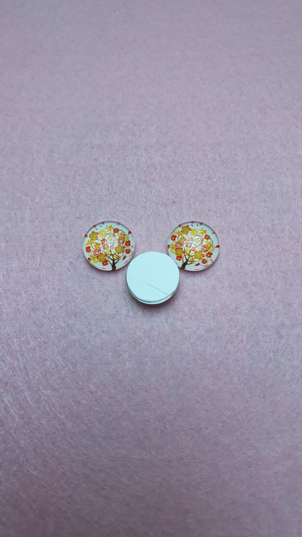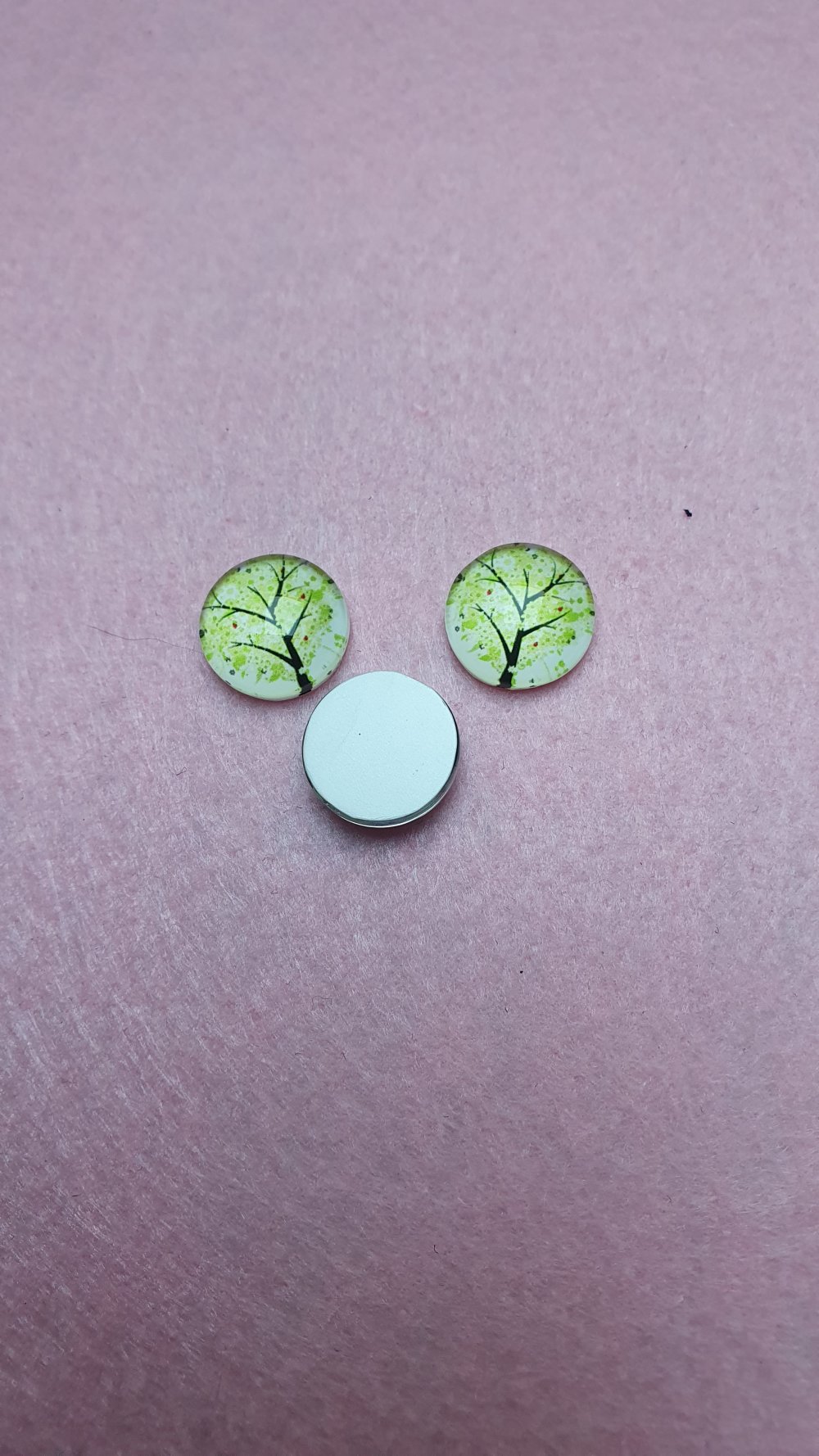 1 cabochon arbre vert rond 14mm multicolore épaisseur 4.7mm