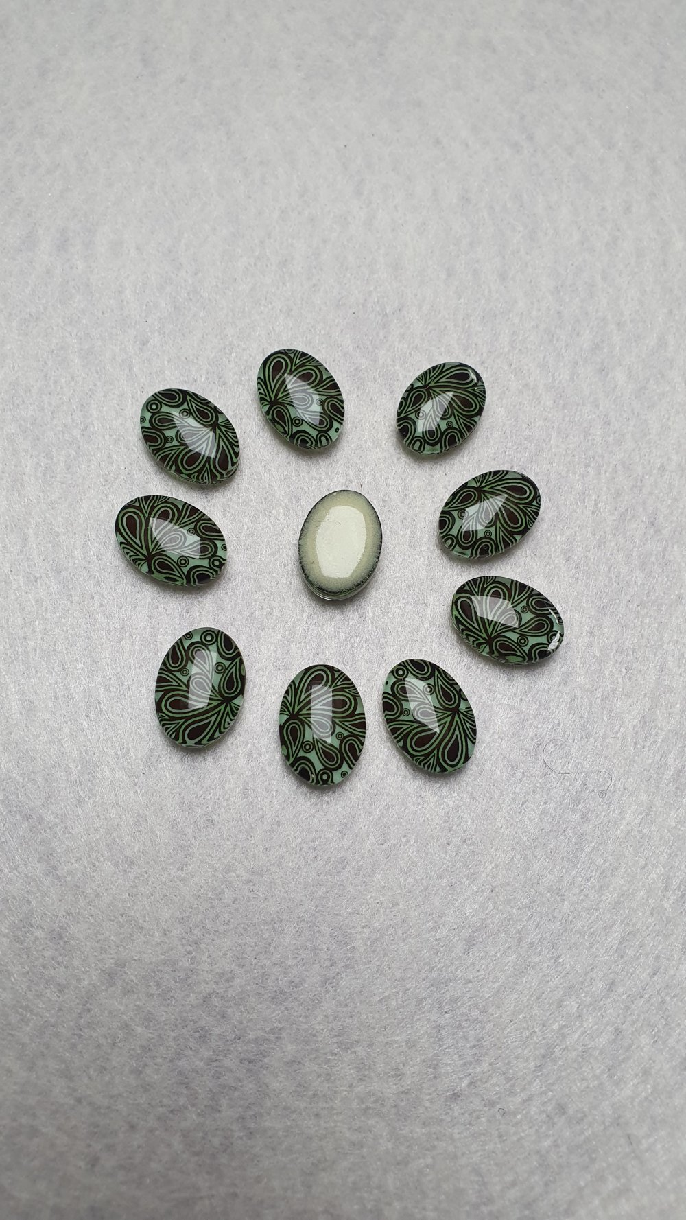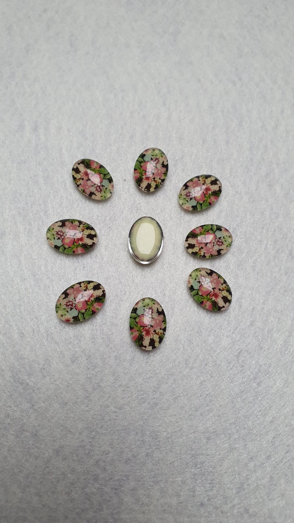 1 cabochon fleur fluorescent ovale 17.5x13mm verre épaisseur 6mm