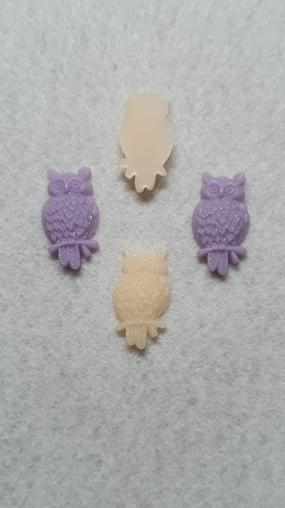 1 cabochon hibou lavande 25x14.5mm résine épaisseur 4.6mm. Diverses couleurs dans la boutique