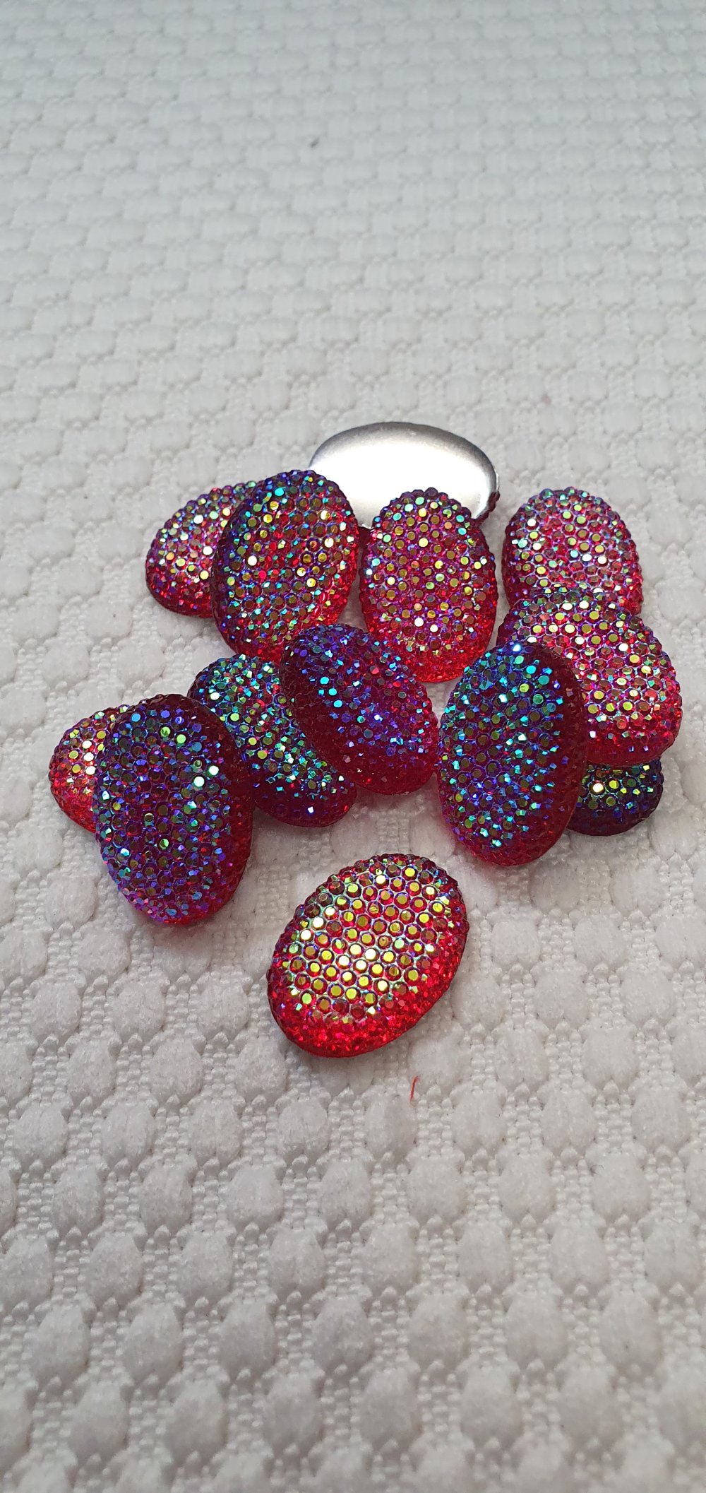 1 cabochon ovale pépite rouge reflet AB 25x17.5mm résine épaisseur 6mm.