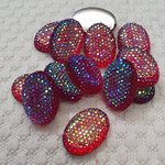 1 cabochon ovale pépite rouge reflet AB 25x17.5mm résine épaisseur 6mm