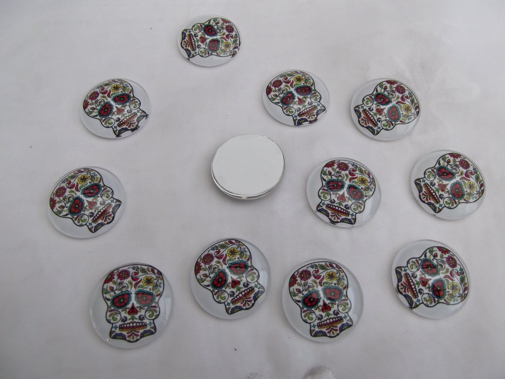 1 cabochon tête de mort 25mm verre épaisseur 6.3mm