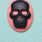 1 cabochon tête de mort 39x29.5mm résine noir rose épaisseur 9.4mm. Très haute qualité