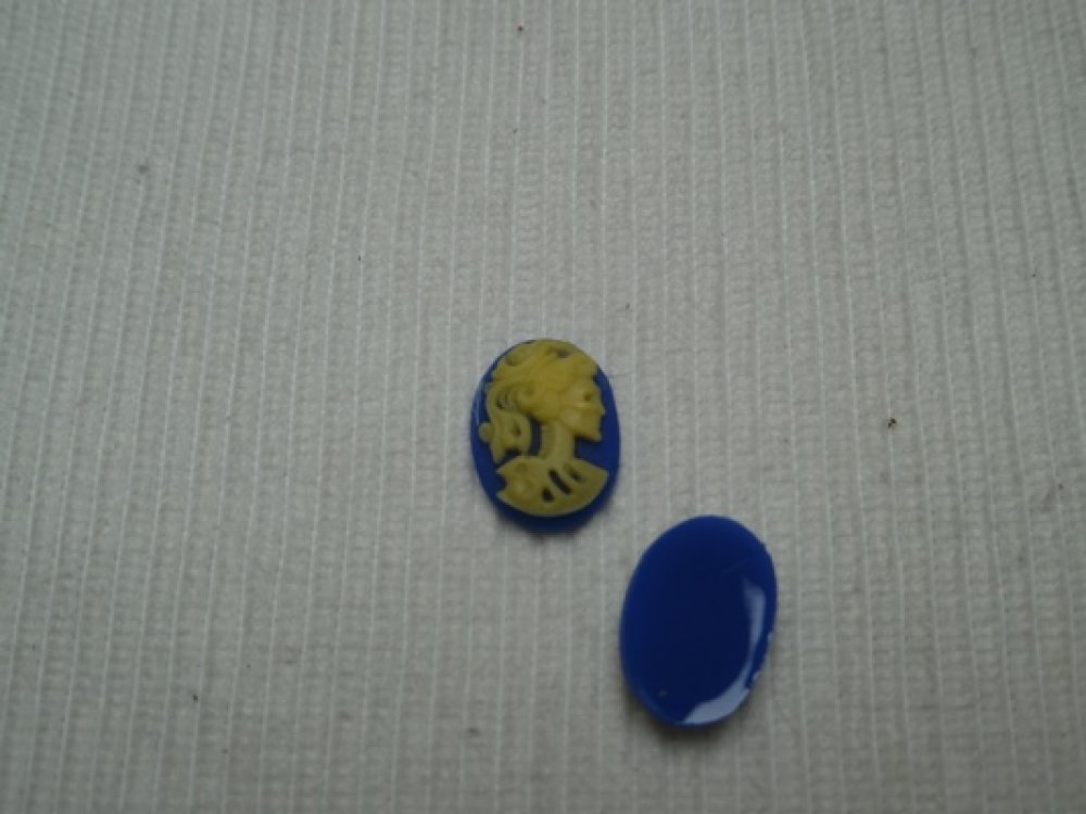 1 cabochon tête de mort femme 18x13.2mm beige bleu roi résine épaisseur 5mm