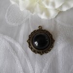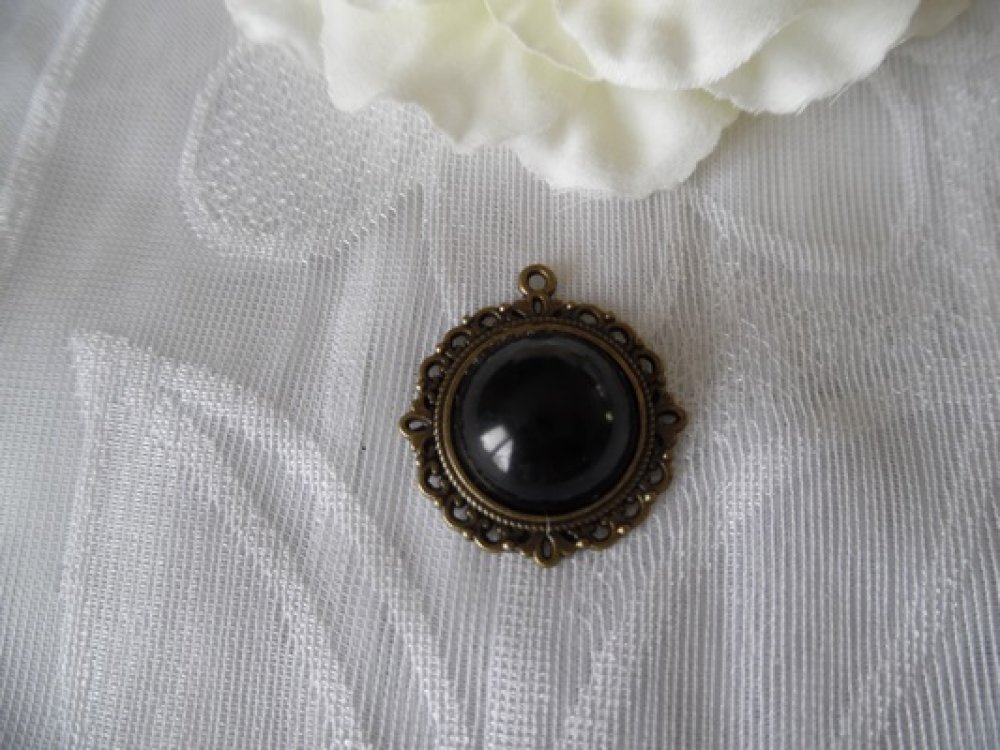 1 Pendentif cabochon noir acrylique 3.4x3.2cm rond bombé ciselé bronze