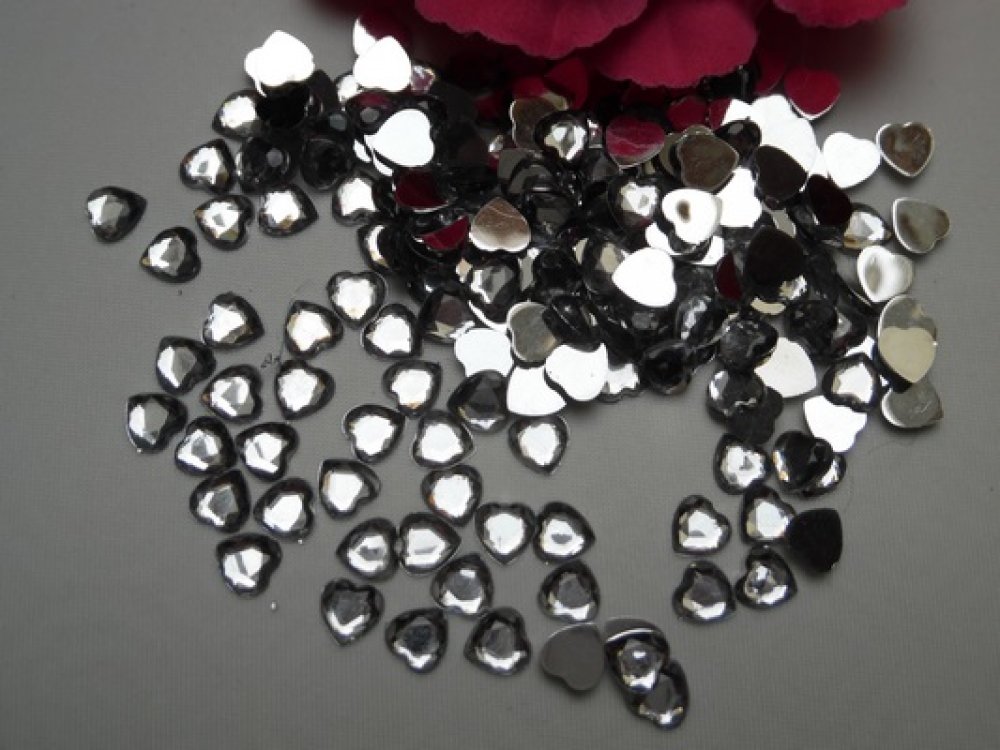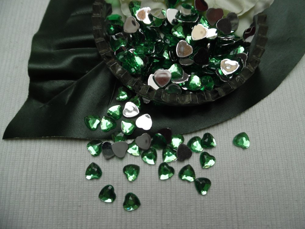 10 cabochons coeur à facette vert foncé 10mm acrylique épaisseur 2.7mm