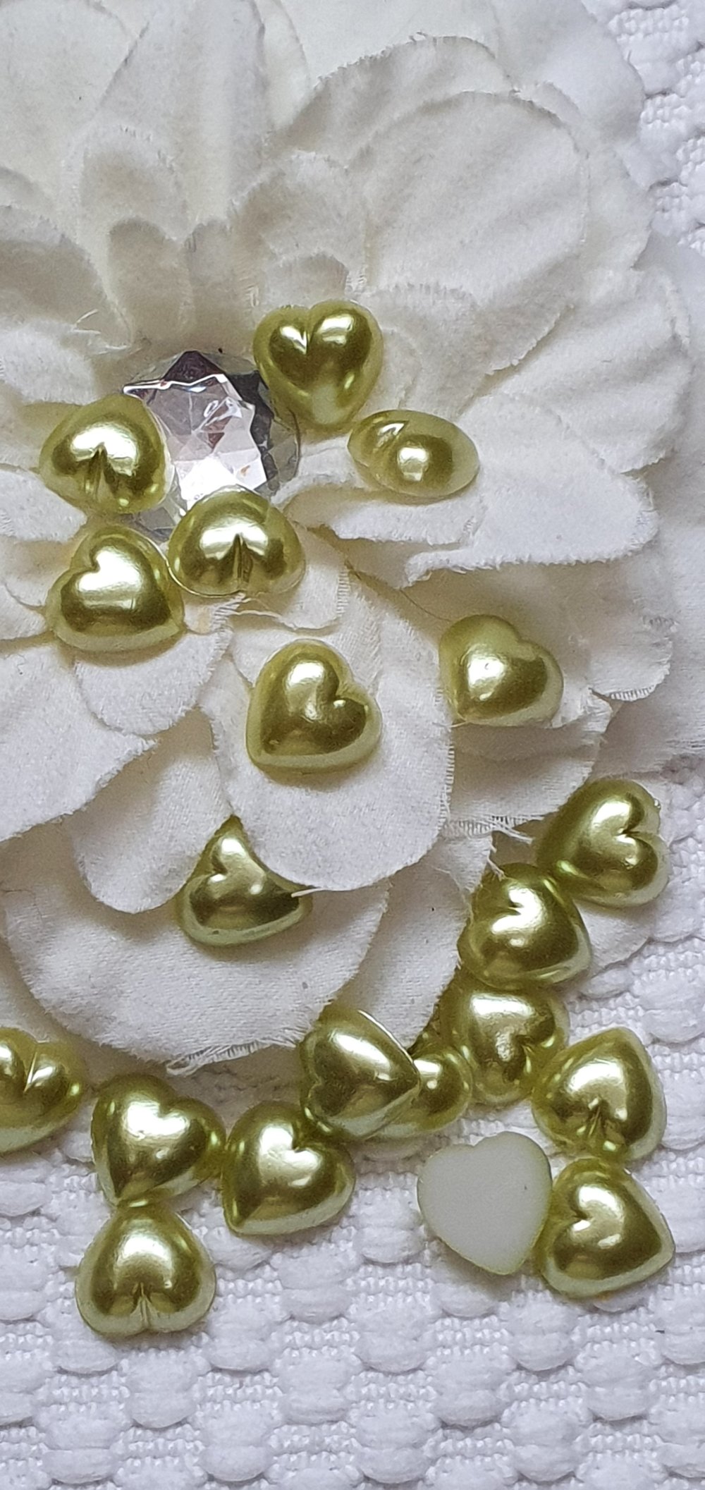 10 cabochons coeur nacré vert anis pâle 12mm résine épaisseur 4mm. Plusieurs couleurs dans la boutique