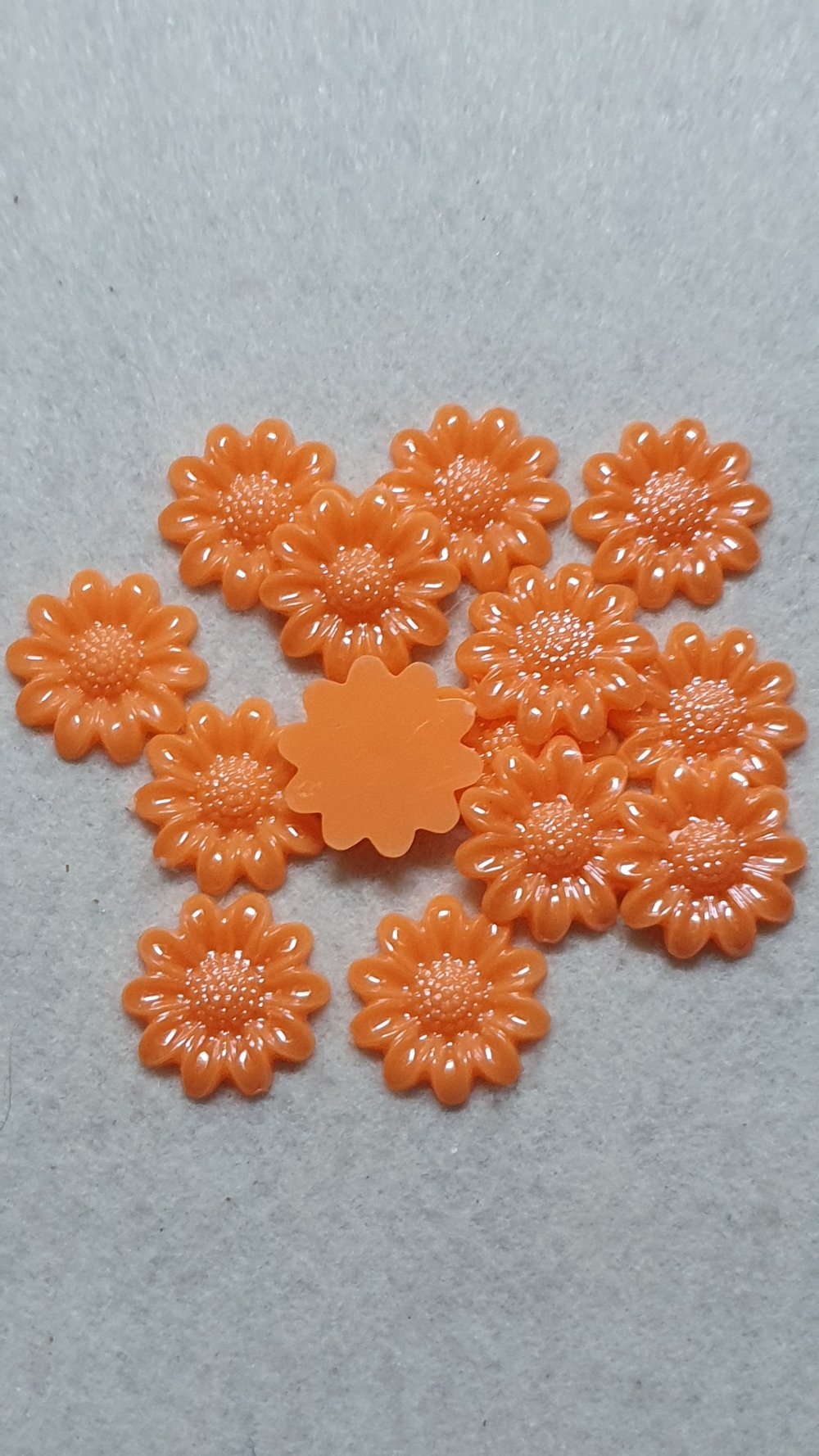 10 cabochons fleur jaune clair 11mm résine épaisseur 2mm. Plusieurs couleurs dans la boutique