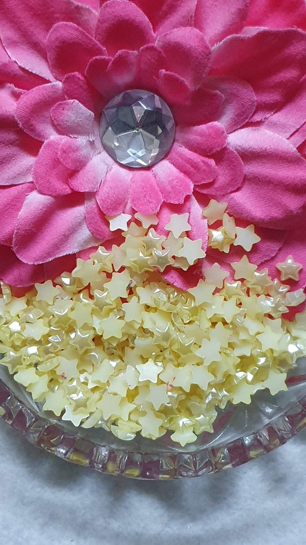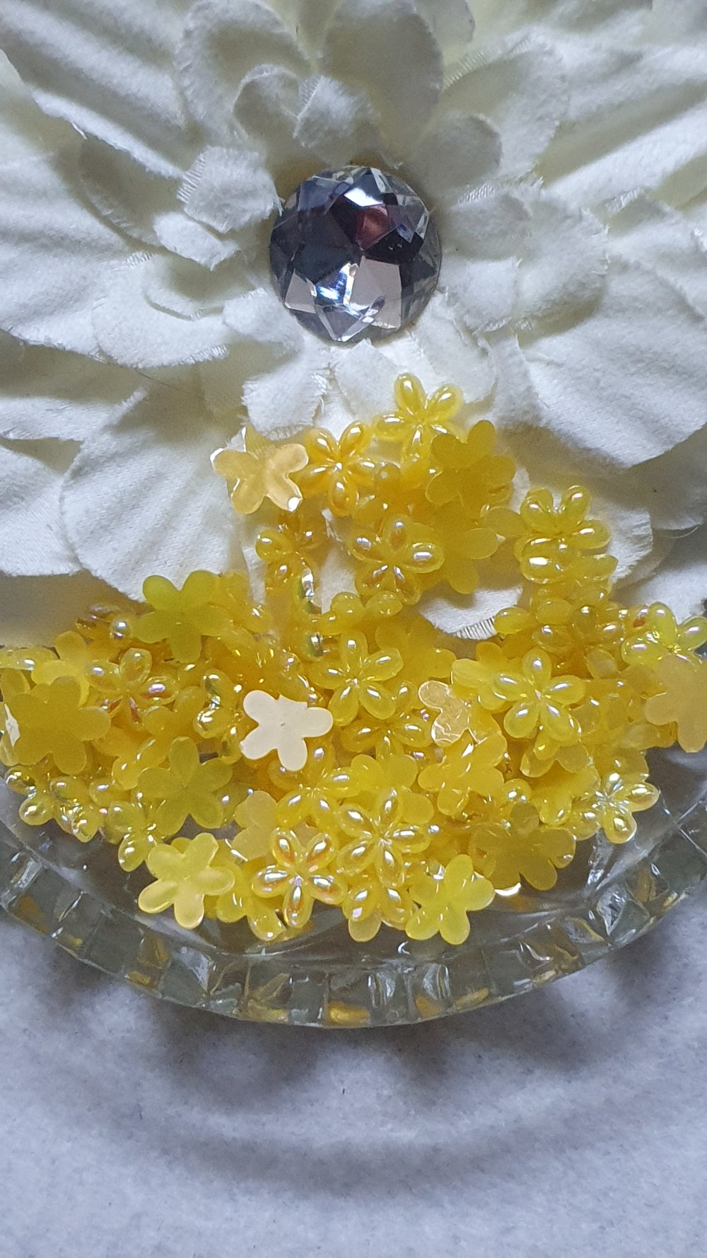 10 cabochons fleur jaune reflet nacrée 10mm résine épaisseur 1.8mm. Plusieurs couleurs dans la boutique