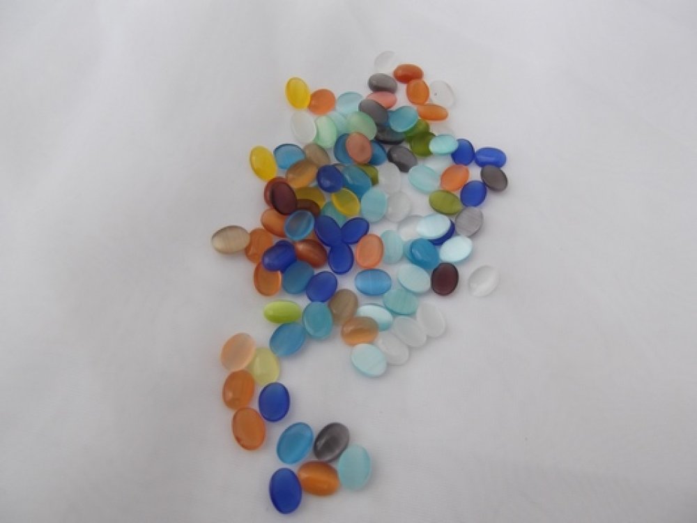 Lot de 10 cabochons ovale oeil de chat 8x6mm mixte verre épaisseur 2.4mm