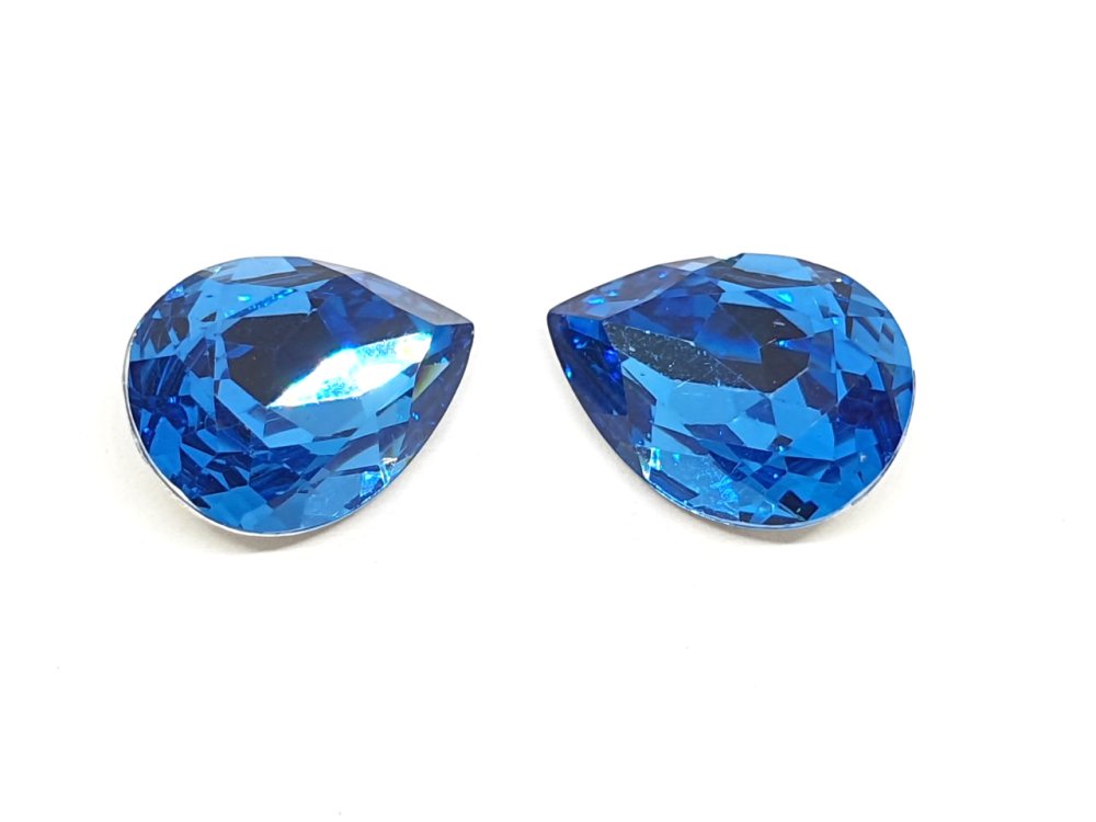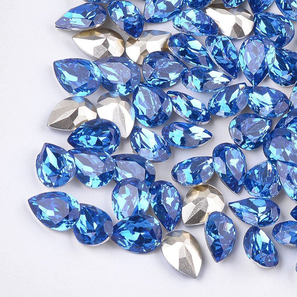 10 PERLES STRASS CABOCHON Goutte à Facettes Bleu 10 x 14 mm - Acrylique - Dos Pointu
