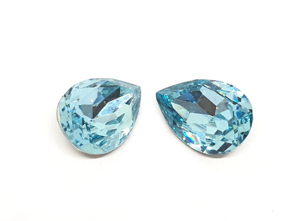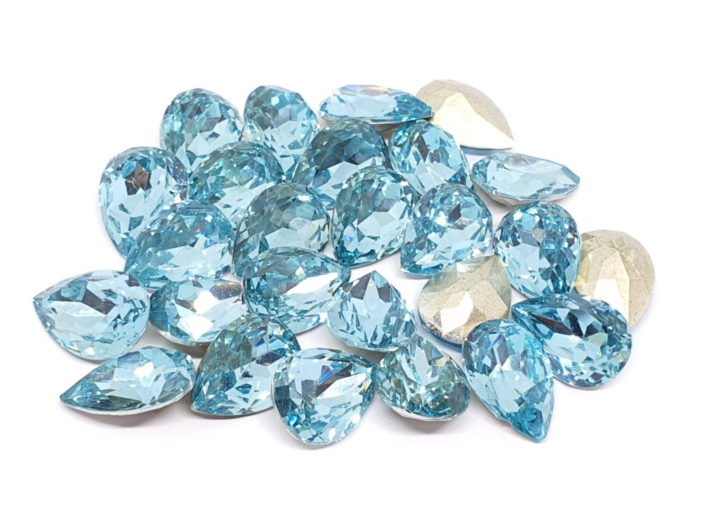 10 PERLES STRASS CABOCHON Goutte à Facettes Bleu Clair 10 x 14 mm - Acrylique - Dos Pointu