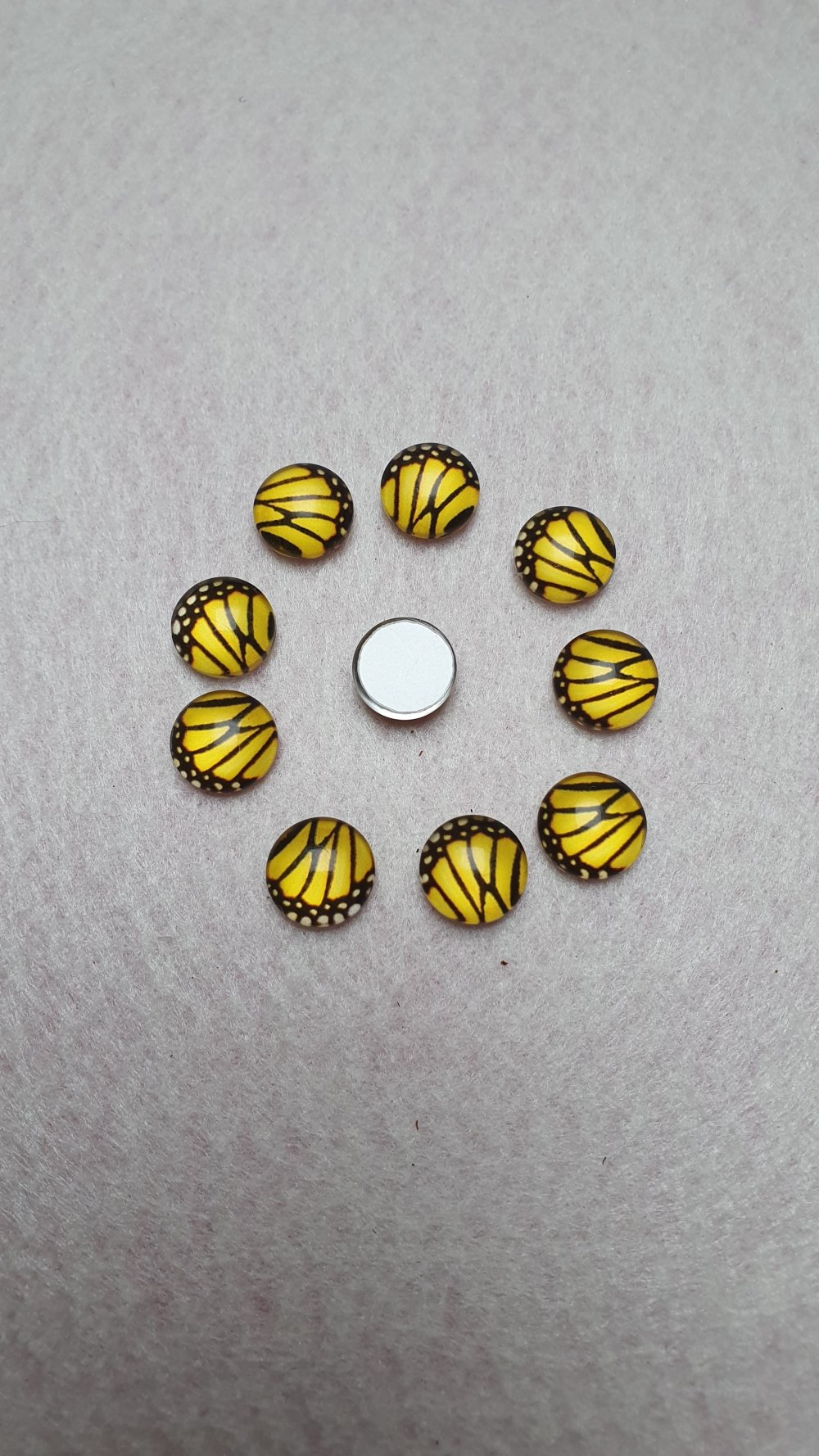 2 cabochon aile papillon jaune noir 12mm verre épaisseur 4.5mm